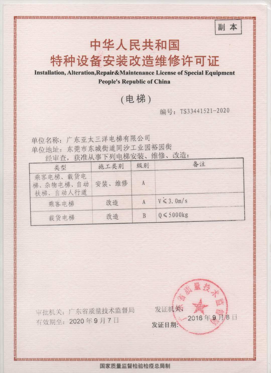 廣東亞太三洋電梯有限公司是從事電梯產(chǎn)品設(shè)計(jì)、制造、安裝及售后服務(wù)的專(zhuān)業(yè)公司,其前身是廣東地區(qū)較早成立的電梯企業(yè)之一,成立于1993年,是一家擁有世界先進(jìn)技術(shù)的電梯企業(yè)。先后獲得了國(guó)家質(zhì)量監(jiān)督檢驗(yàn)總局及國(guó)家有關(guān)部門(mén)頒發(fā)的(AAA)生產(chǎn)許可證和安裝資質(zhì),并通過(guò)了行業(yè)質(zhì)量體系認(rèn)證,產(chǎn)品行銷(xiāo)世界30多個(gè)國(guó)家和地區(qū)。“好品質(zhì),用心打造”,亞太三洋電梯堅(jiān)持一絲不茍地控制所有生產(chǎn)工藝,秉承質(zhì)量的精益求精和工藝的日臻完善...